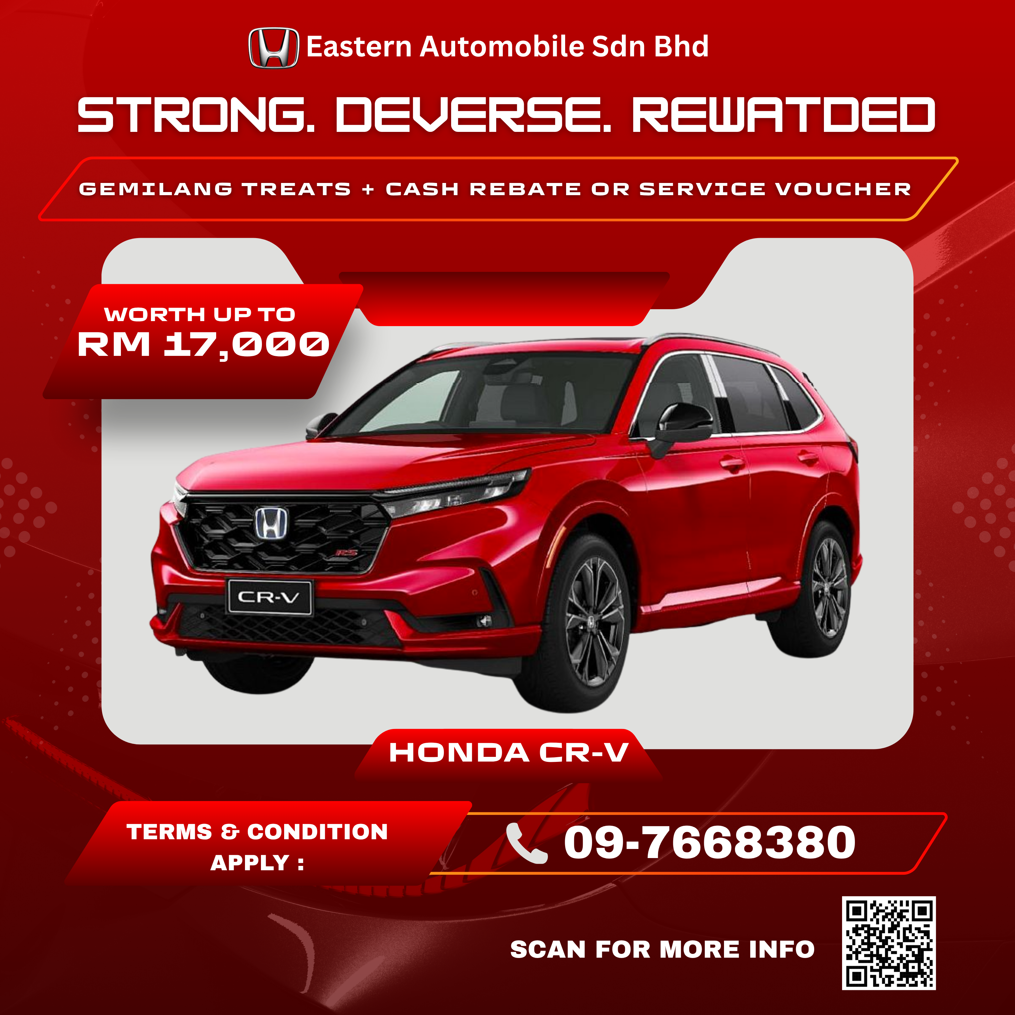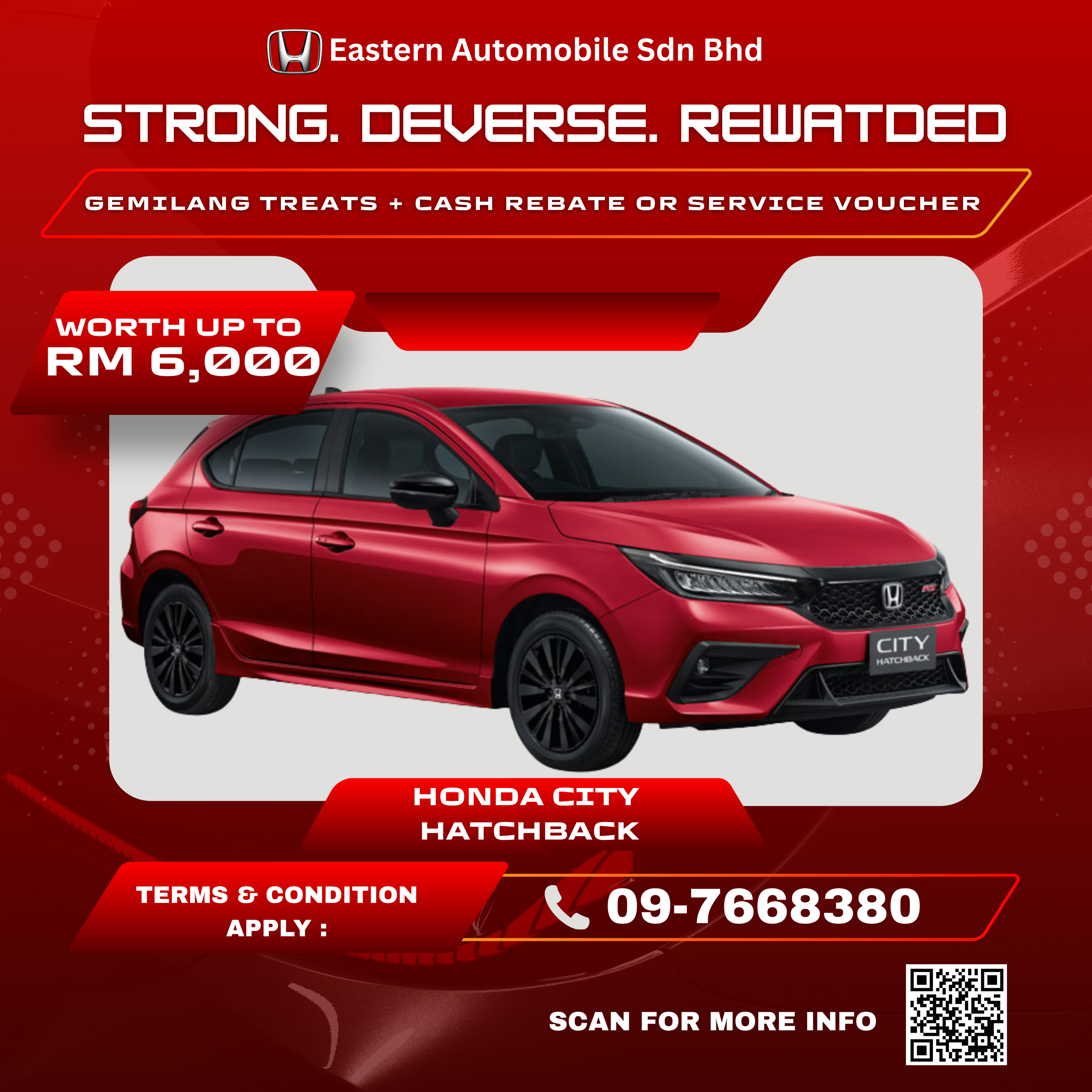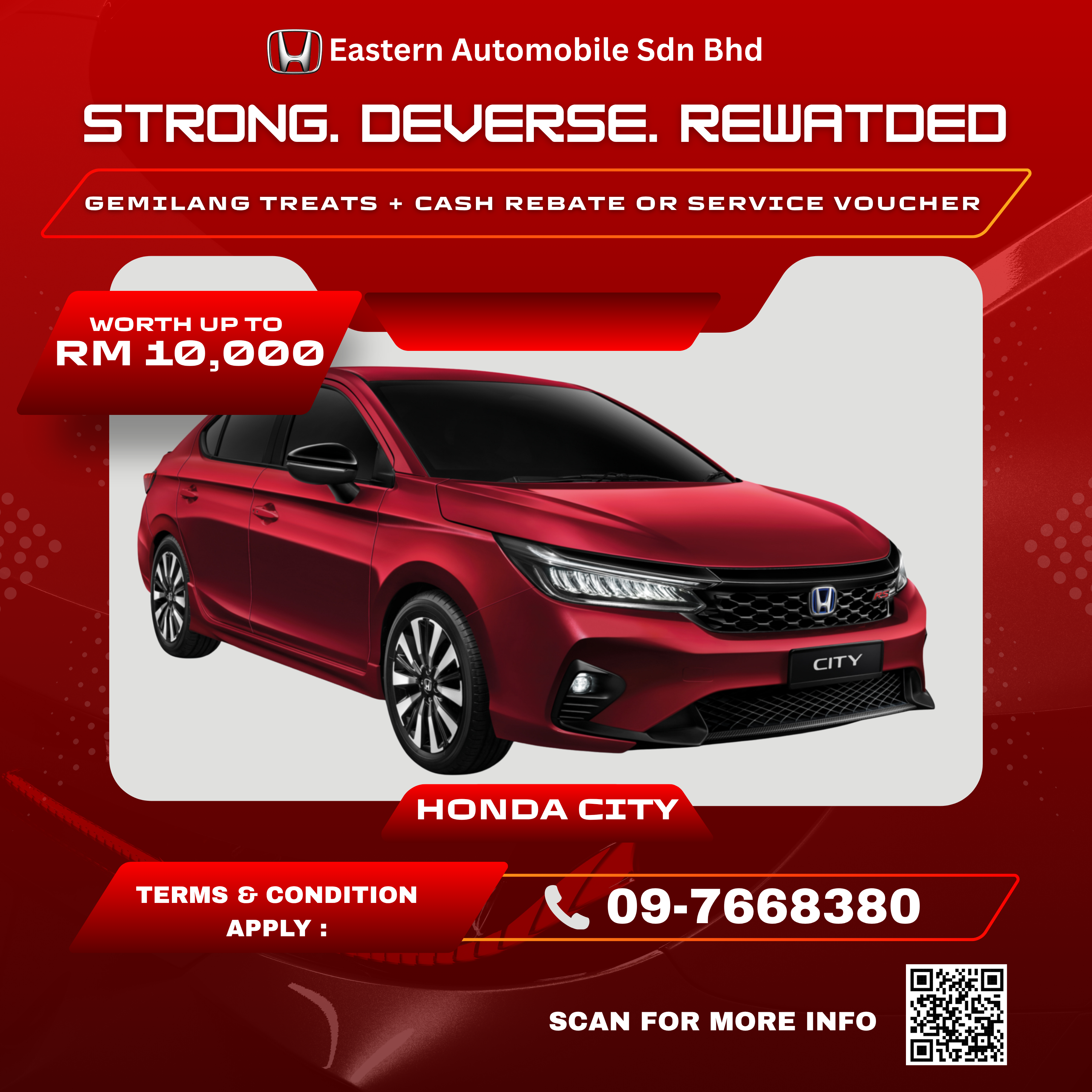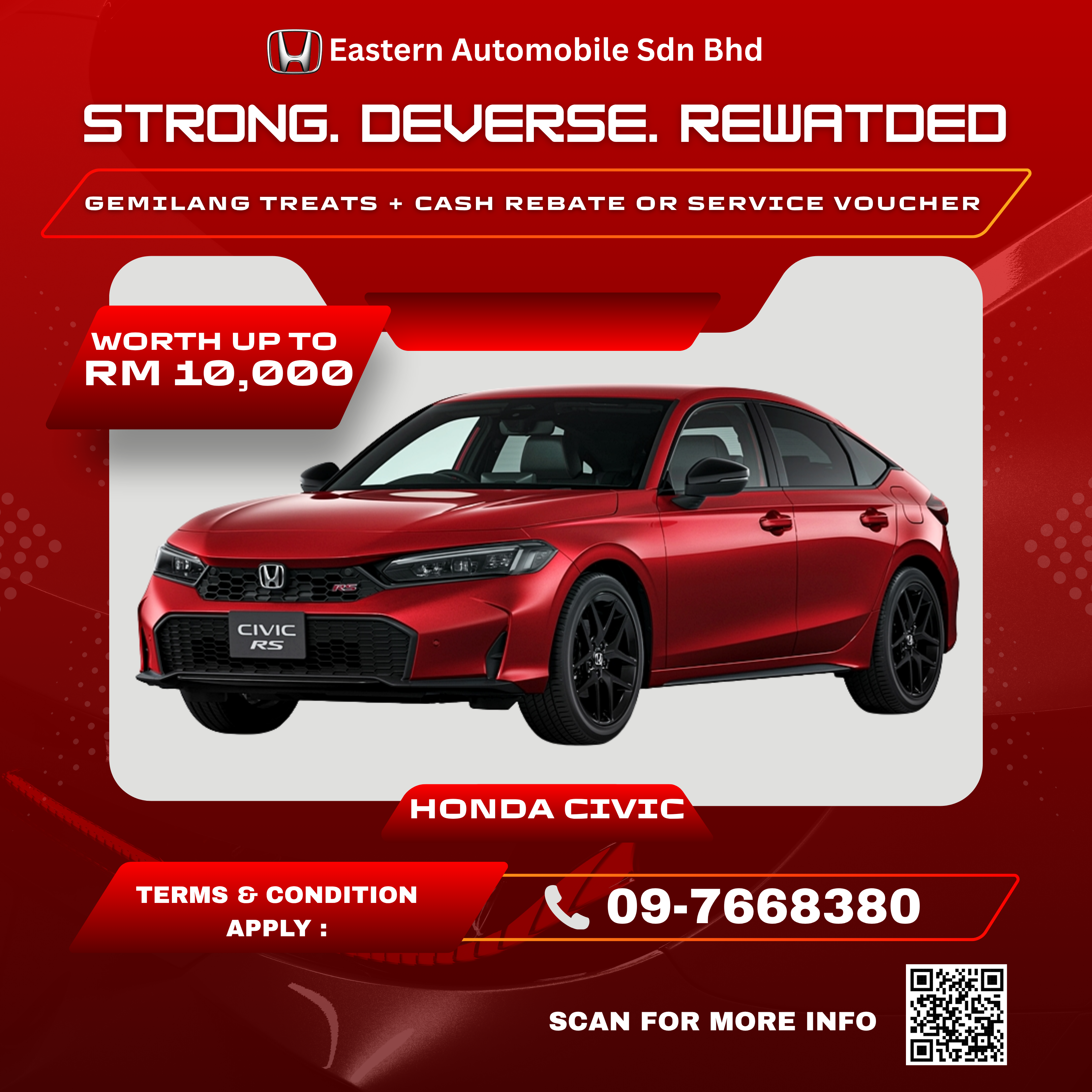 Pelbagai model terbaru Honda ditawarkan bersama perkhidmatan selepas jualan yang cemerlang dan pilihan alat ganti tulen Honda. Komitmen Honda Eastern Automobile Sdn. Bhd. terhadap akses untuk mobiliti kepada komuniti melangkaui jualan, di mana servis terbaik adalah keutamaan kami.